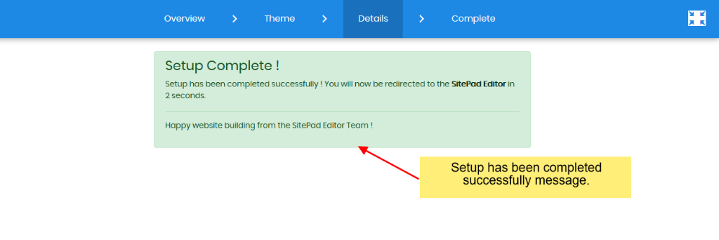 Once the installation is complete, you’ll be automatically redirected to the SitePad Editor.