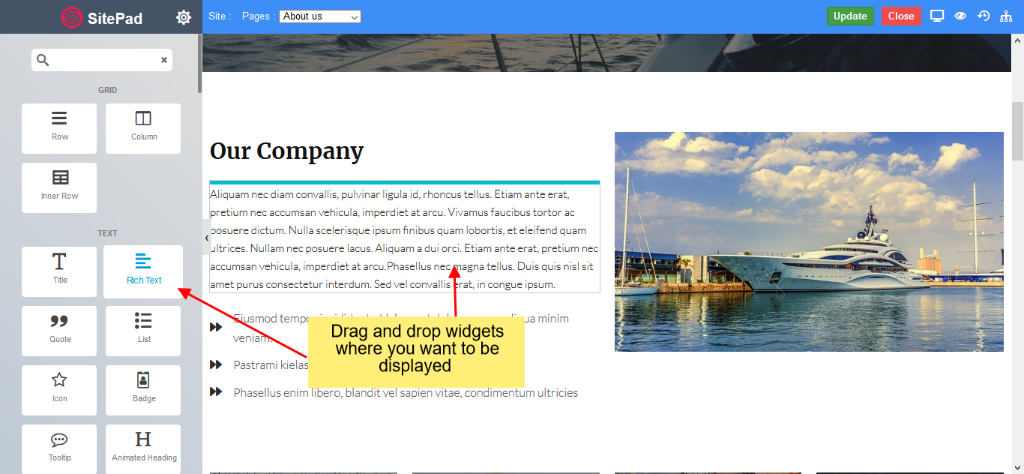 2. Use the drag-and-drop editor to add text, images, buttons, and more.