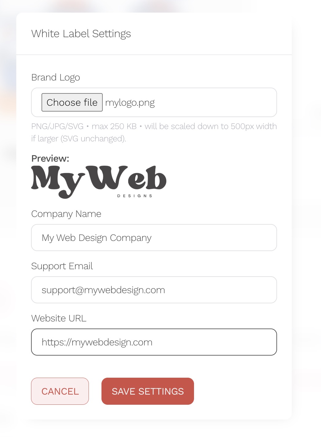 - Your clients’ login screen will also feature your logo, when you share your unique panel login URL (covered in the next section).